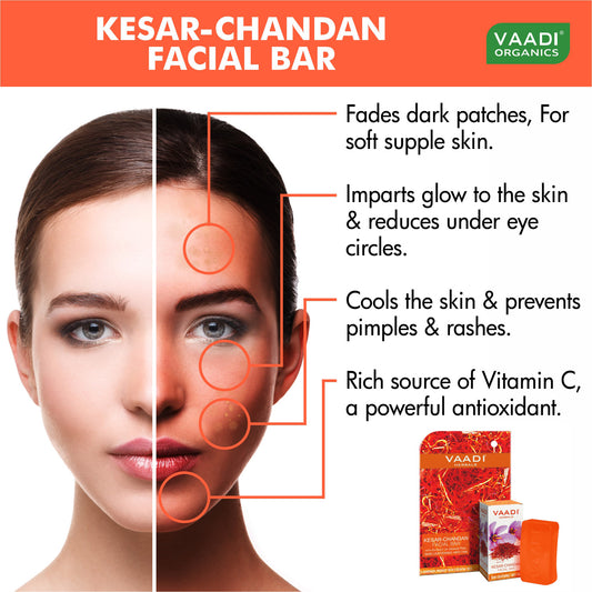 Pack of 4 Kesar Chandan Facial Bars with Extract of Orange Peel (25 gms x 4)