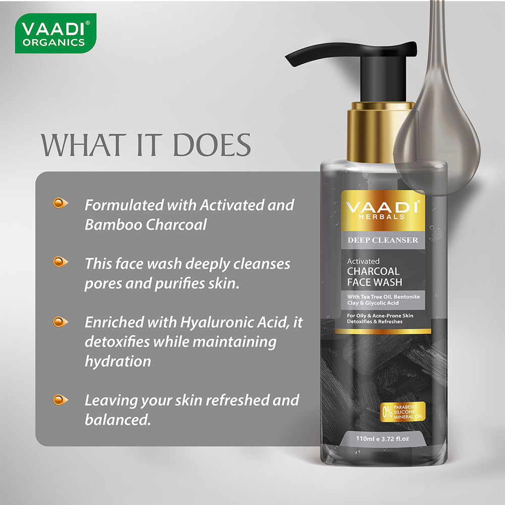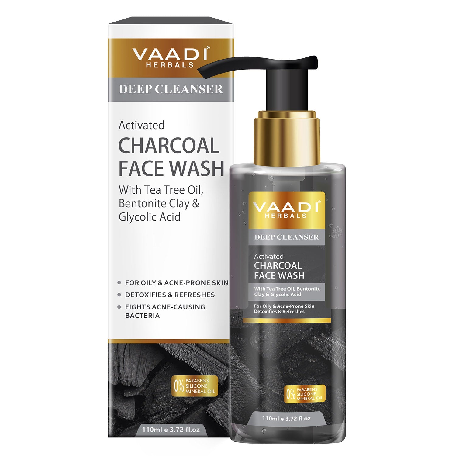 Activated Charcoal Face Wash with Tea Tree Oil, Bentonite Clay & Glycolic Acid| For Oily & Acne-Prone Skin| Detoxifies & Refreshes| Deep Purify| No Parabens , Mineral, Silicon| Face Wash for Women & Men ( 110 ml )