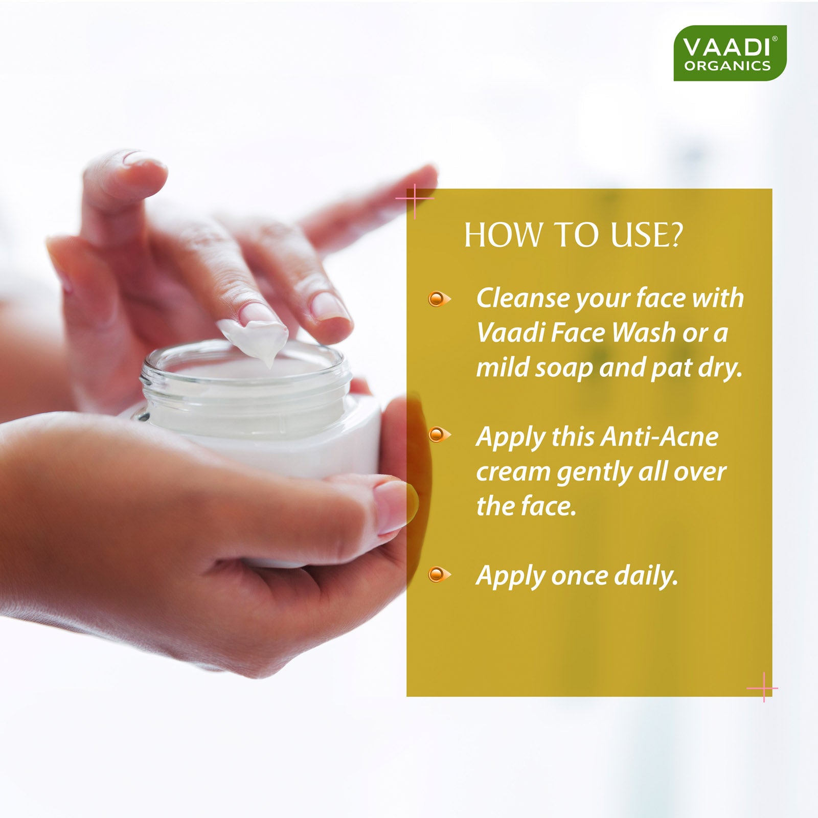 An innovative formulation, this cream tackles the acne problem at its very root. The anti-bacterial action of Clove Oil, along with Neem & Orange Extracts, kills the acne-causing bacteria. Their astringency further controls excess oil as well as unclogs and shrinks skin pores to prevent future eruptions too. Its regular use leaves your face healthy & acne-free!
