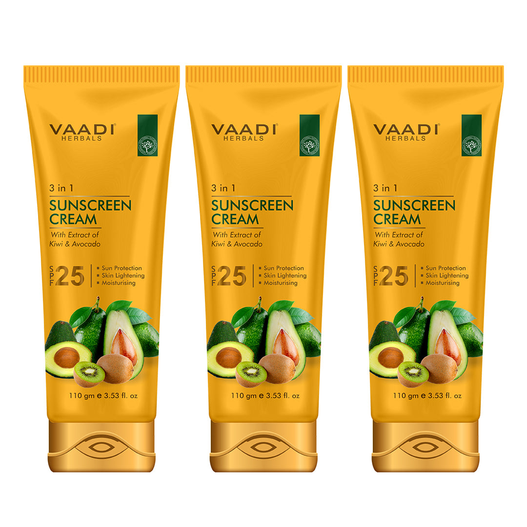 Pack of 3 Sunscreen Cream SPF-25 with Extracts of Kiwi & Avocado (110 gms x 3)