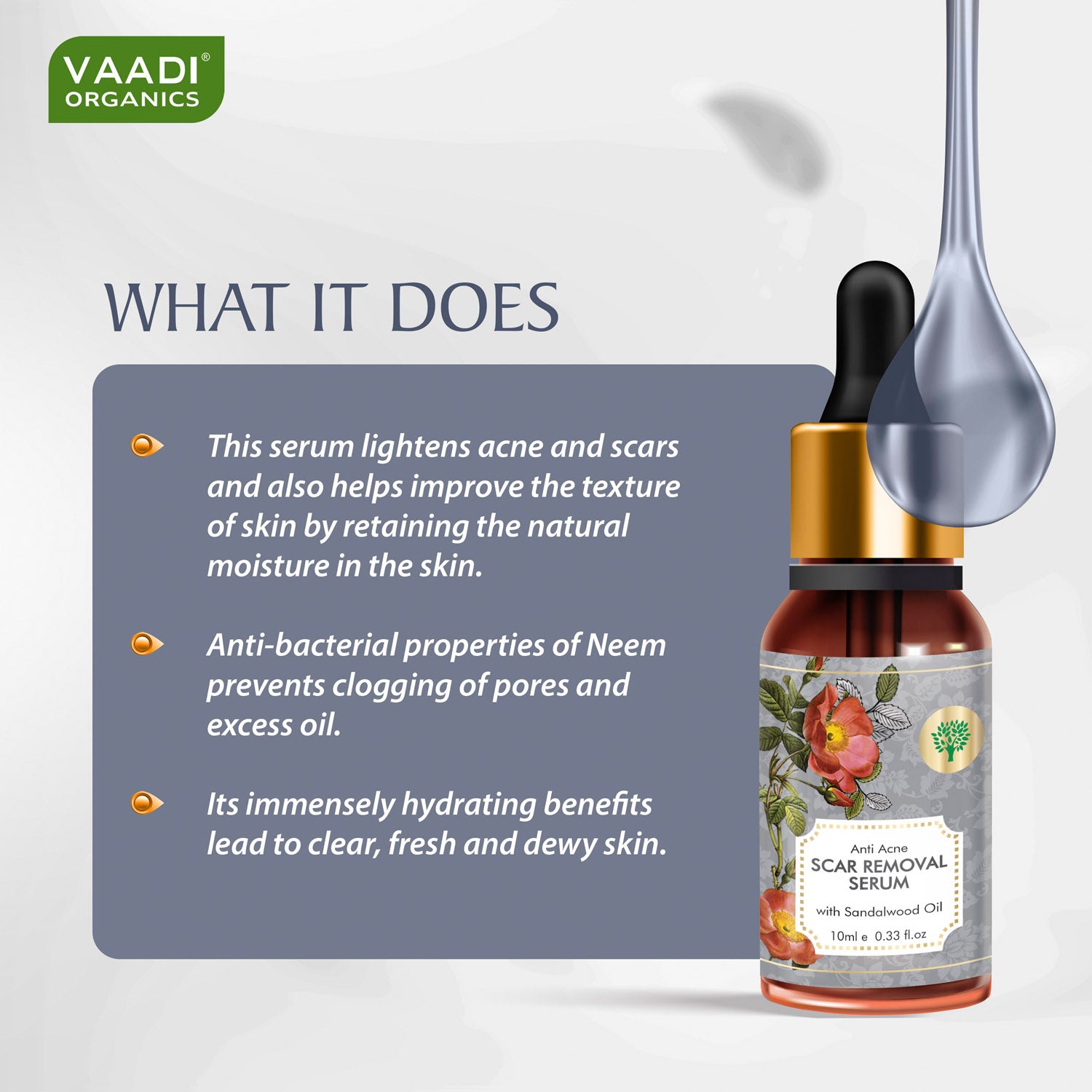 Pack of 2 Scar Removal Serum (Pure Mix of Sandalwood Oil, Steam Distilled Neem & Fenugreek Extract) - Reduces Acne, Dark Spots & Pigmentation (2 x 10 ml)