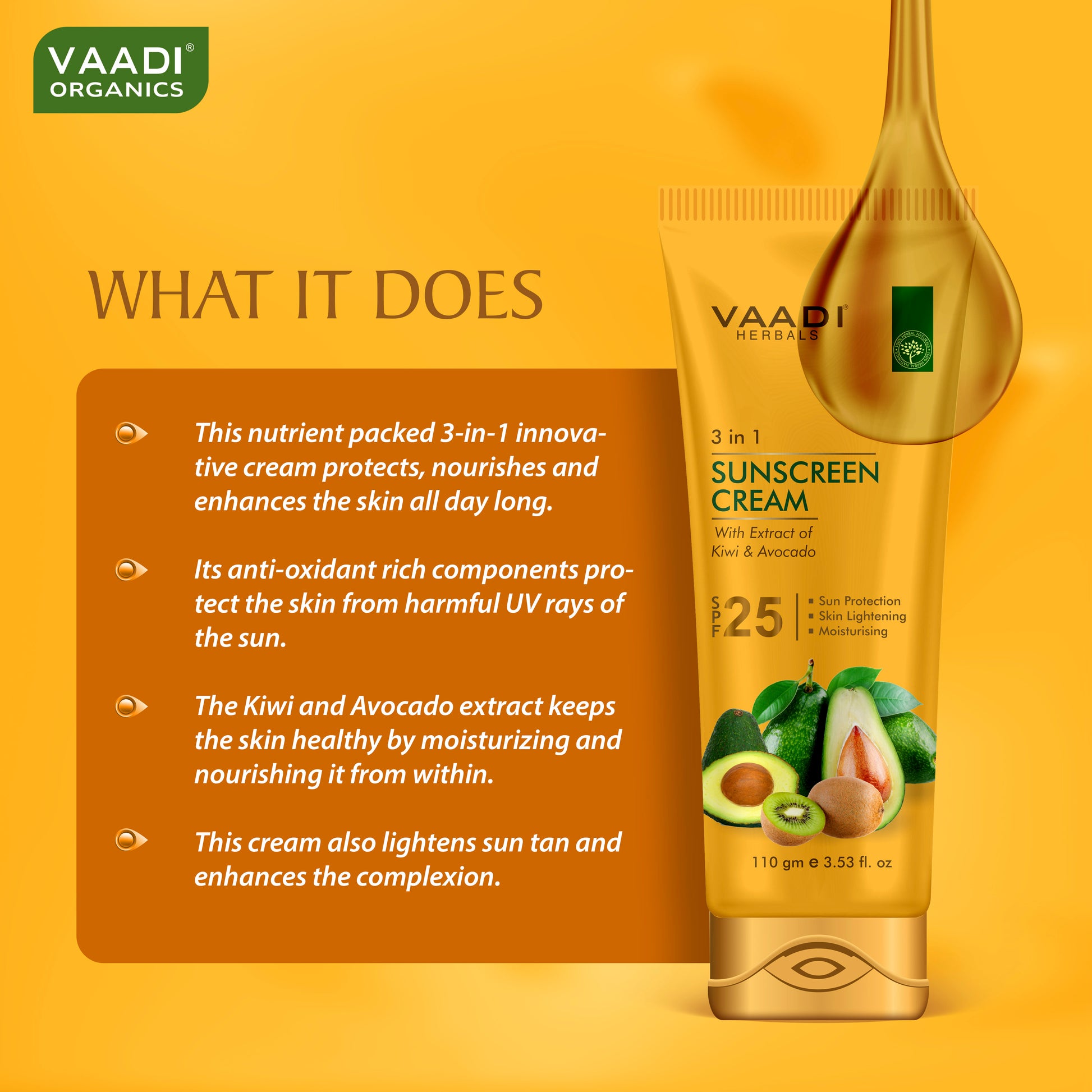 Sunscreen Cream SPF-25 with Extracts of Kiwi & Avocado (110 gms)