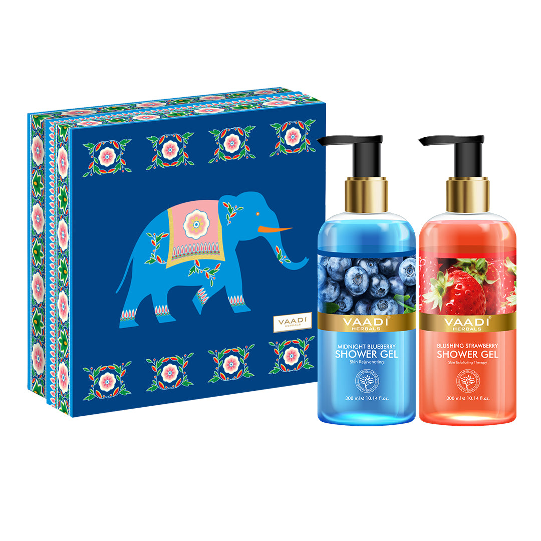 This traditional gift box, delicately crafted and made by hand, consists of authentic herbal Shower gels that have been made using rich Indian oils, herbs and plant extracts. This fruity combination of Strawberry and Blueberry will ensure that your bathing experience is nourishing and fragrant each time!